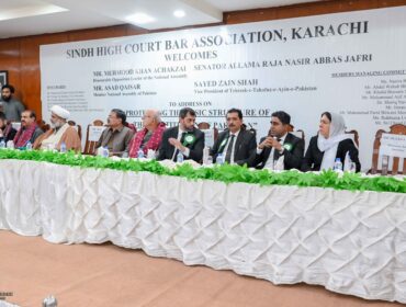 Mr. Mehmood Khan Achakzai Hon’ble Opposition Leader of the National Assembly, Senator Allama Raja Nasir Abbas Jafri, Mr. Asad Qaisar (MNA) and Sayed Zain Shah Vice President of Tehreek-e-Tahafuz-e-Ayin-e-Pakistan Visited SHCBA and Addressed the Legal Fraternity on ‘Protecting’ the Basic Structure of the Constitution of Pakistan”