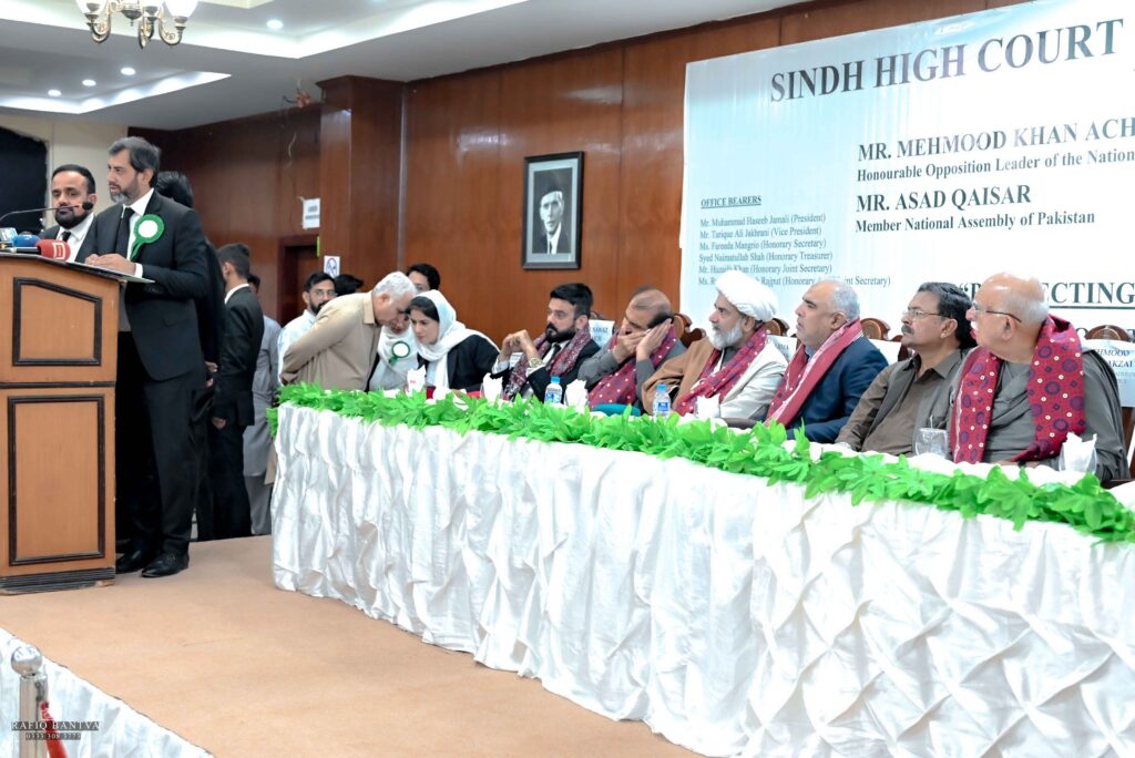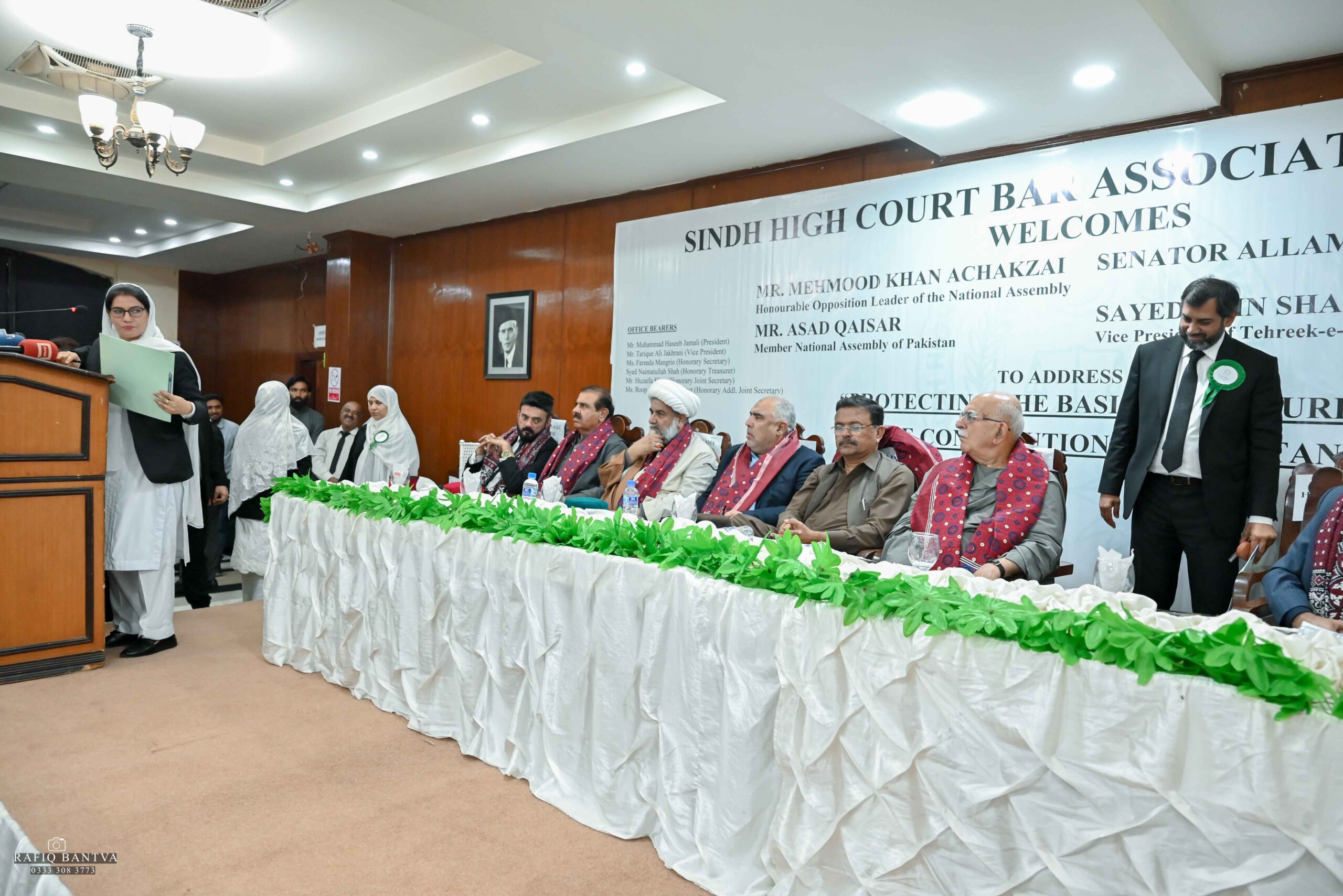 Mr. Mehmood Khan Achakzai Hon’ble Opposition Leader of the National Assembly, Senator Allama Raja Nasir Abbas Jafri, Mr. Asad Qaisar (MNA) and Sayed Zain Shah Vice President of Tehreek-e-Tahafuz-e-Ayin-e-Pakistan Visited SHCBA and Addressed the Legal Fraternity on ‘Protecting’ the Basic Structure of the Constitution of Pakistan”